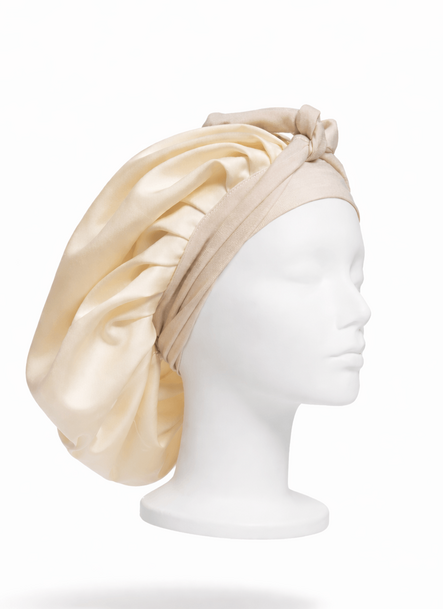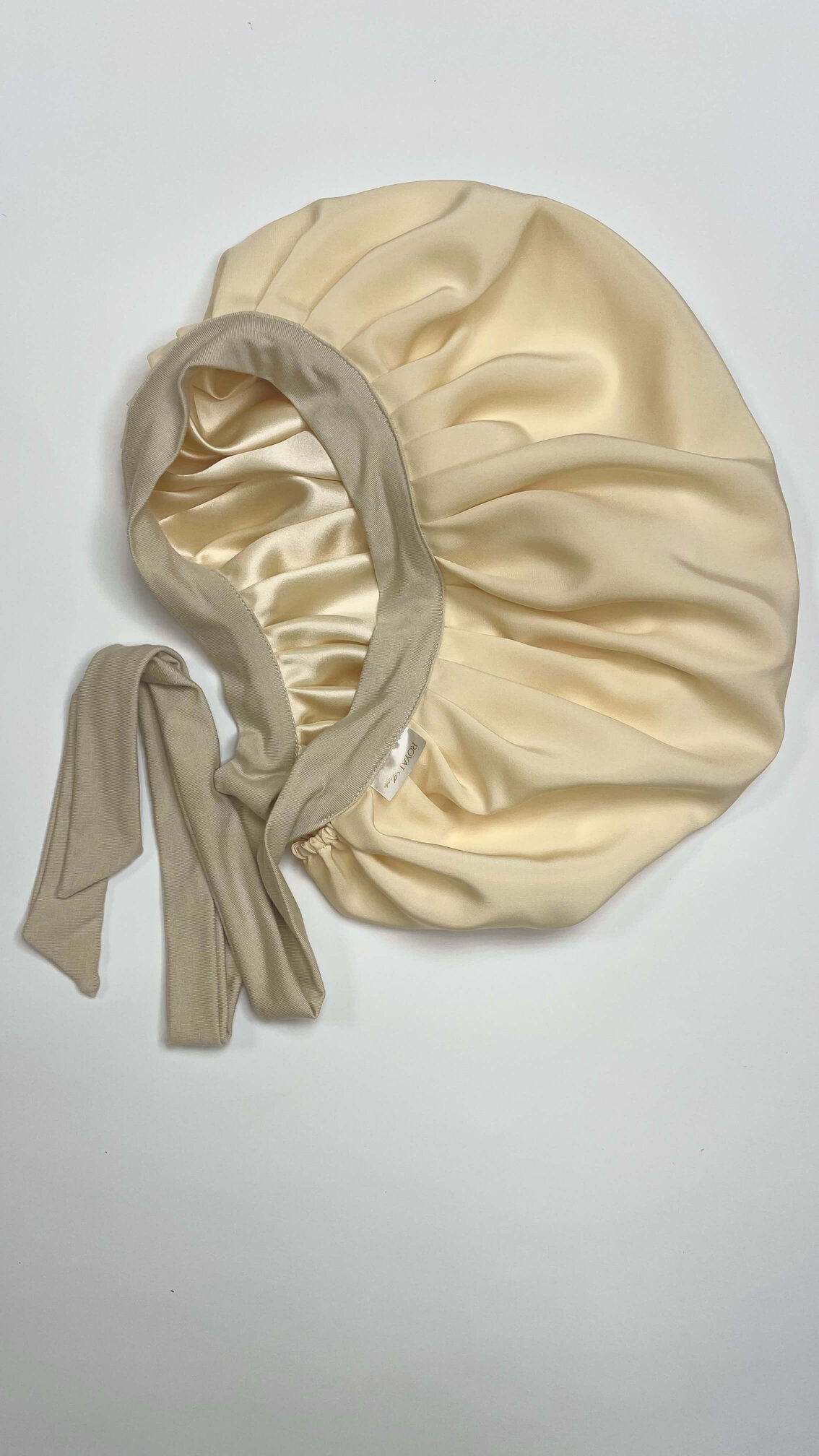 SILVER COLLECTION – Hodvábna čiapka na spanie (bonnet) Real Champagne