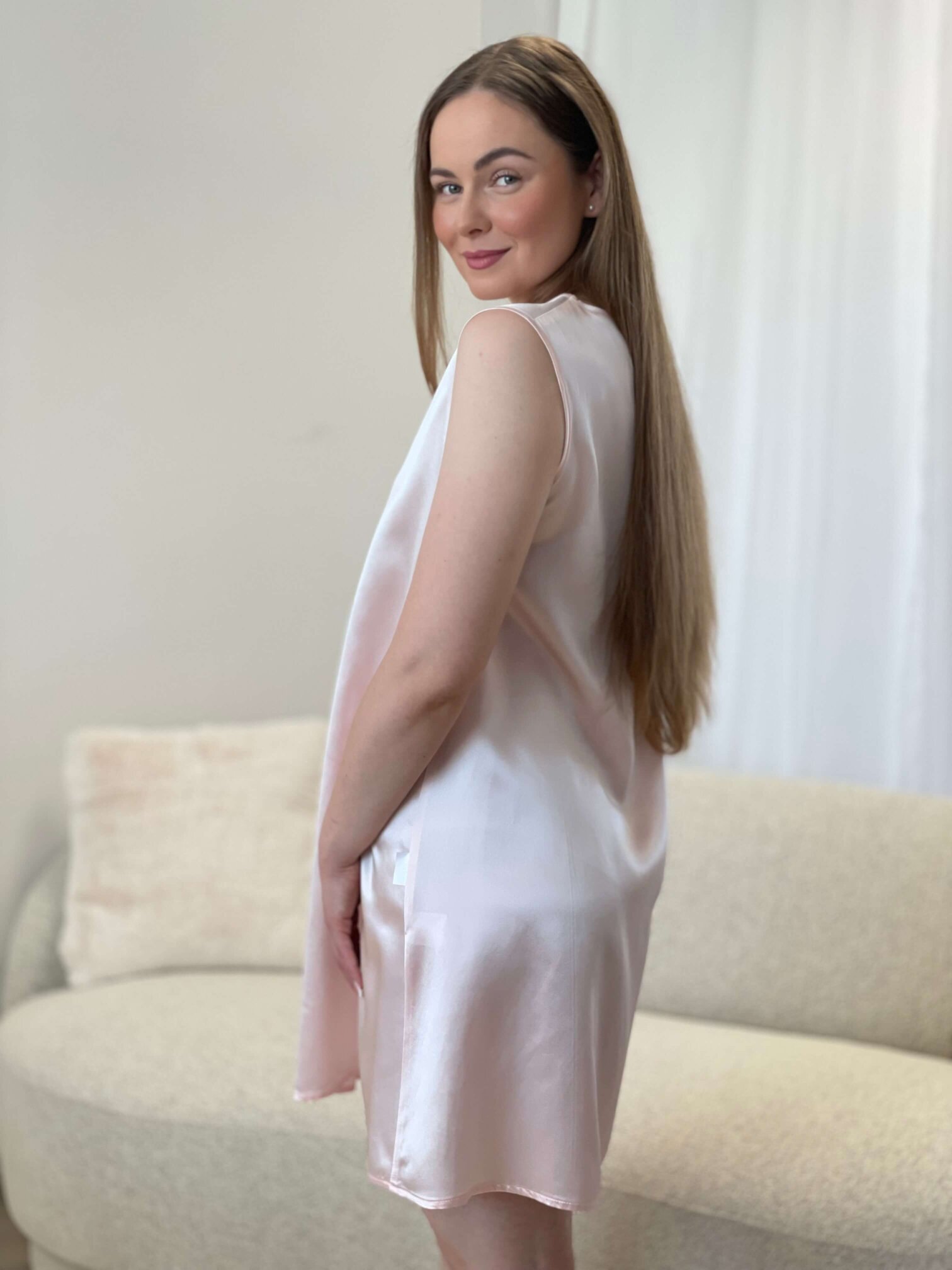 Táto hodvábna košieľka je symbolom jednoduchej elegancie a spája to najlepšie z dvoch svetov – luxus a vedu. Je ušitá z jemného morušového hodvábu obohateného o mikročastice iónov striebra, ktoré pôsobia antibakteriálne a udržiavajú pokožku sviežu počas celej noci, pretože chladí pokožku, dýcha a ladne kopíruje telo.