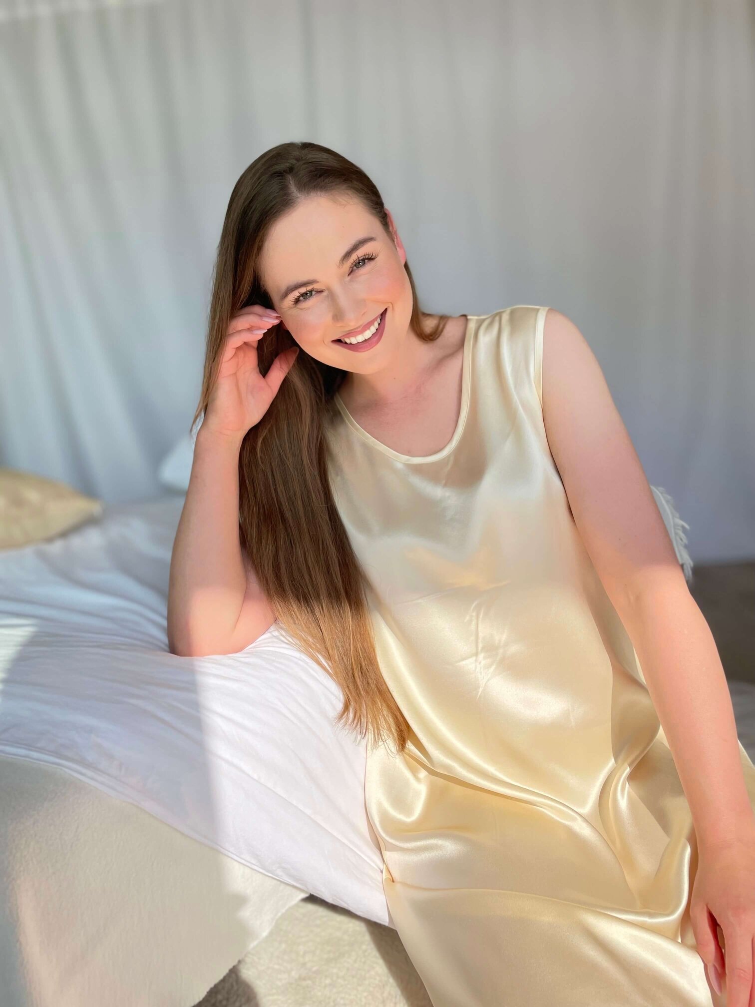 SILVER COLLECTION – Hodvábna nočná košieľka Real Champagne