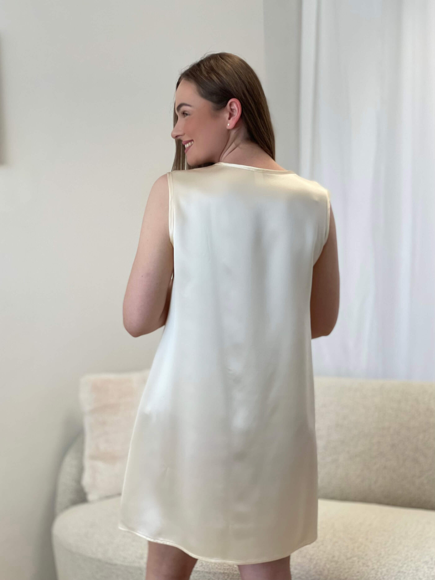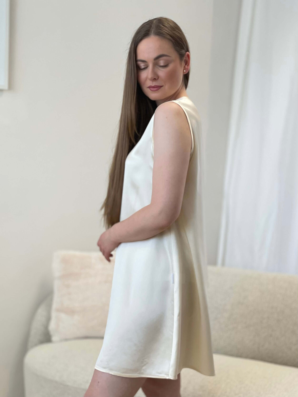 Táto hodvábna košieľka je symbolom jednoduchej elegancie a spája to najlepšie z dvoch svetov – luxus a vedu. Je ušitá z jemného morušového hodvábu obohateného o mikročastice iónov striebra, ktoré pôsobia antibakteriálne a udržiavajú pokožku sviežu počas celej noci, pretože chladí pokožku, dýcha a ladne kopíruje telo.